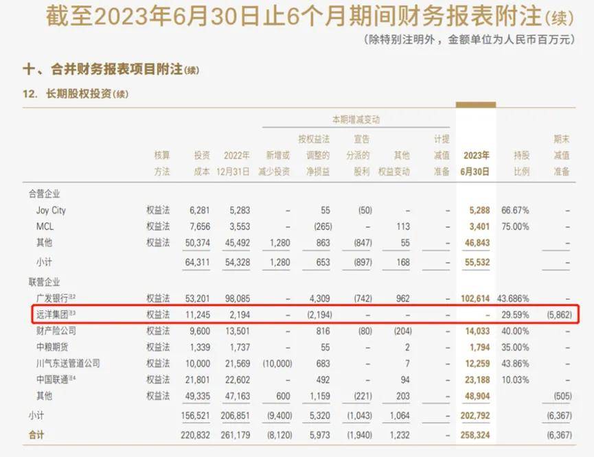 不過,在2023年半年報中,中國人壽對遠洋集團剩餘的21.94億元長期股權投資已“清零”,並計提了58.62億元的減值準備。