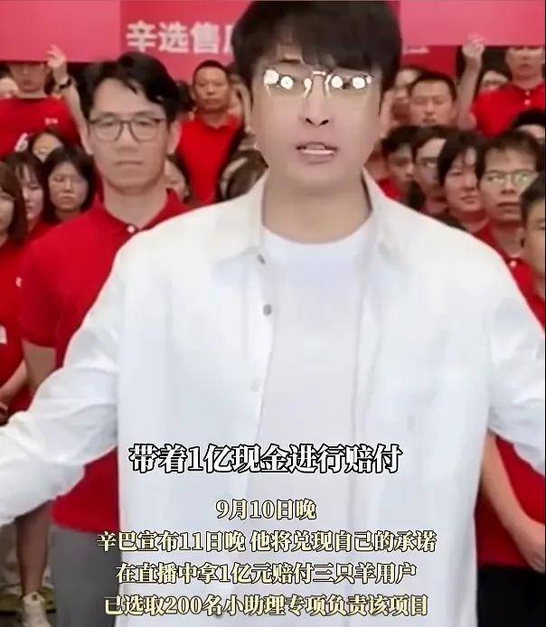 9月10日,辛巴個人賬號發出直播預告,將在11日晚8點帶着一億現金、從1600名辛選助理中挑出來的200名助理進行對某主播槽頭肉、茅台酒進行賠付。