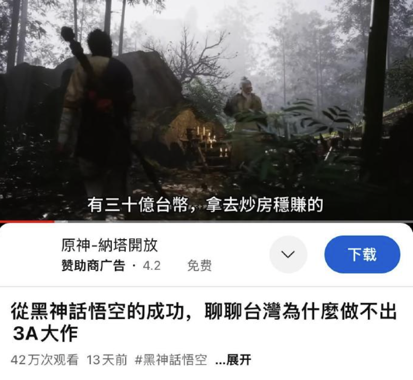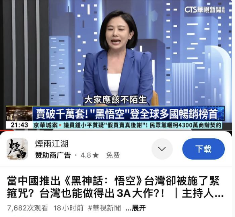 目前台灣所有的單機遊戲主播,幾乎都在直播遊玩黑神話悟空,這是史無前例的文化反向輸出。