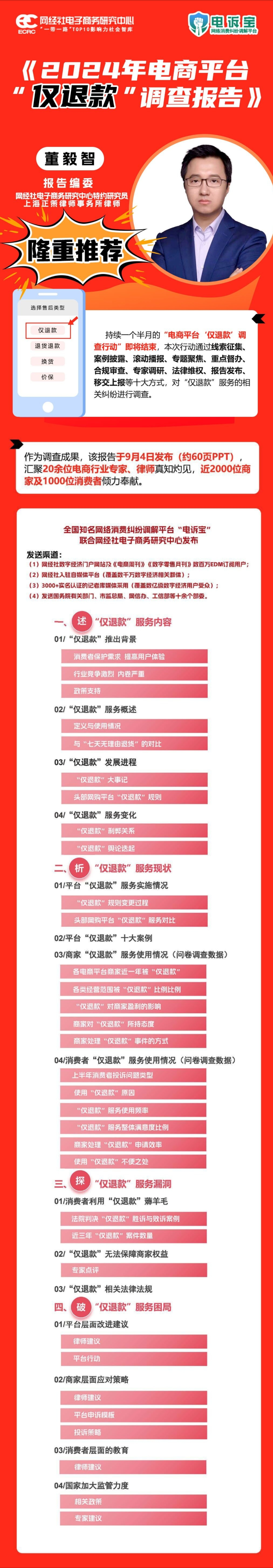 7月23日,網絡消費糾紛調解平台“電訴寶”聯合網經社電子商務研究中心發起“電商平台‘僅退款’調查行動”,涉及對象包括但不限於拼多多、京東、淘寶天貓、抖音電商、快手電商、1688、小紅書等國內電商平台,並密切關注速賣通、Temu、亞馬遜、SHEIN等跨境電商平台。