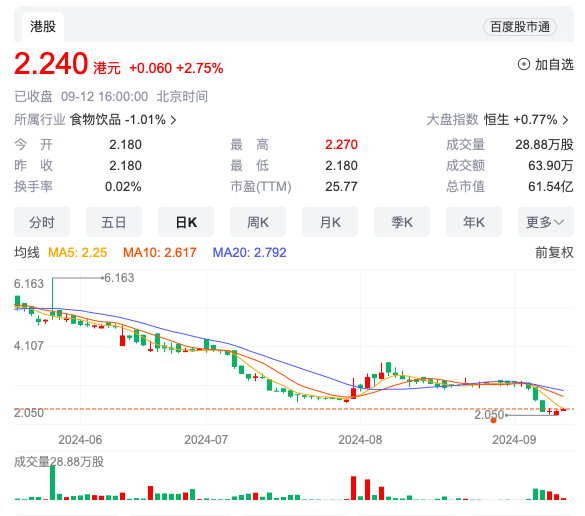 截至最新港股收盤,鍋圈的股價已跌至2.24港元/股,較發行價(5.98港元)暴跌62.5%,更是較年內最高點(12.34港元)暴跌了81.9%。這不僅僅是數字上的冰冷變化,更是市場對鍋圈未來信心的急劇下滑。