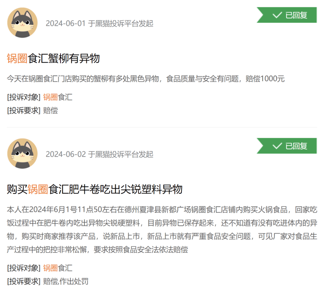 更為嚴重的是,鍋圈在食品安全方面頻頻曝出問題。消費者投訴平台上關於“食品中有異物”、“食物變質”甚至“食品包裝上沒有生產日期和保質期”的投訴屢見不鮮,而這些問題在多次曝光後依然沒有得到有效解決。監管部門的多次處罰更是讓鍋圈的信譽雪上加霜。一旦食品安全問題失控,鍋圈將很難再挽回消費者的信任。