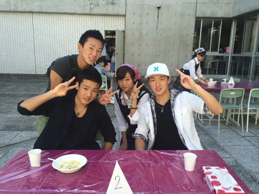 ·高橋(中間女孩)與同學合影,戴白帽者即為在網絡上哭訴的網民。