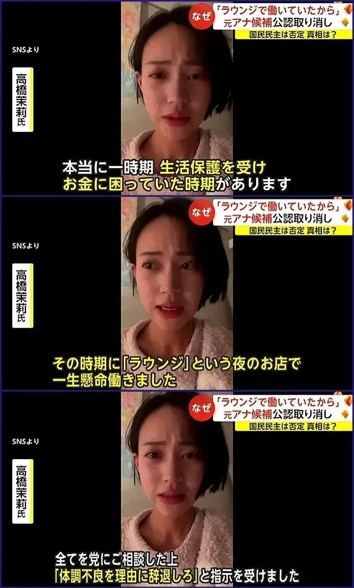 明知自己早已是政治棋子,高橋卻仍選擇“硬剛”,在網上發表長文,表示自己在進入國民民主黨時,就如實彙報過自己曾做兼職陪酒女的經歷,既然當時沒問題,為何現在就成了問題?
