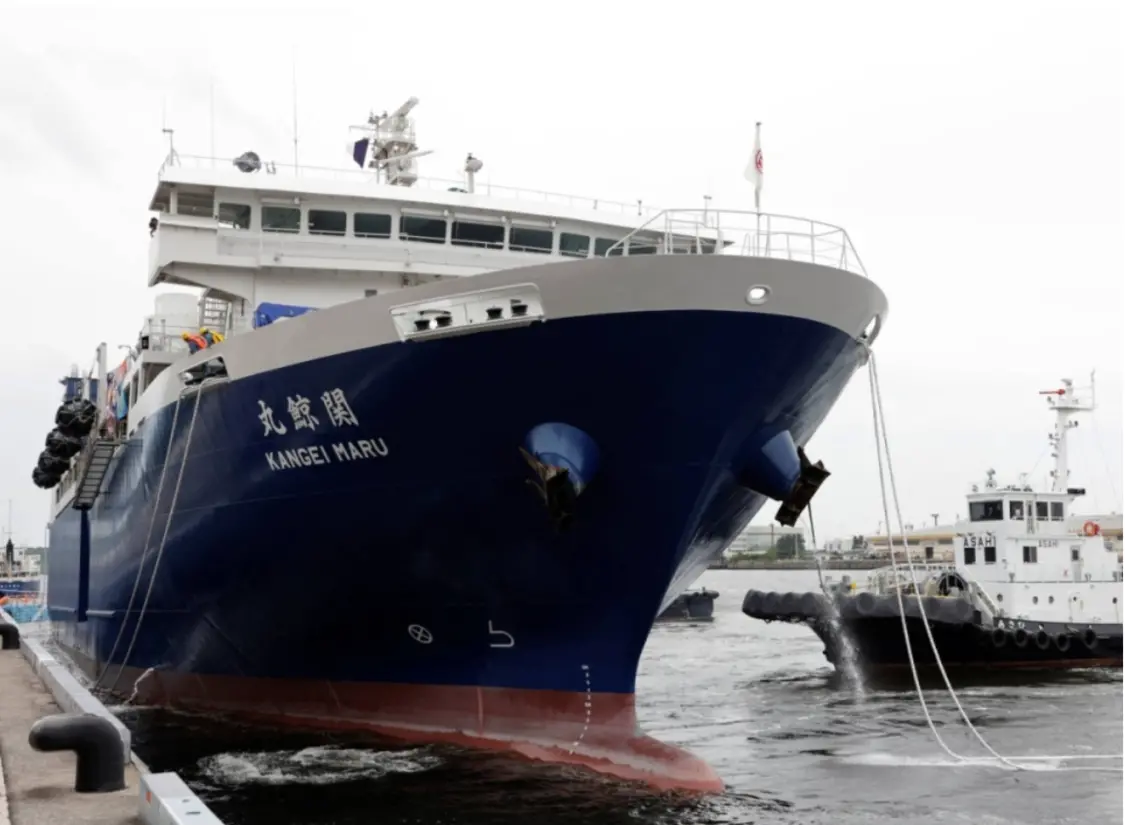 “關鯨丸”號是日本造船廠時隔73年後再度“出山”打造的捕鯨船,重達9300噸,也是當今世界上唯一一艘可以捕撈鯨魚的母船。