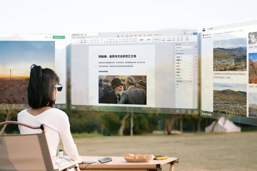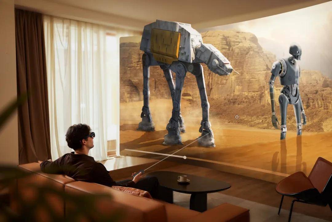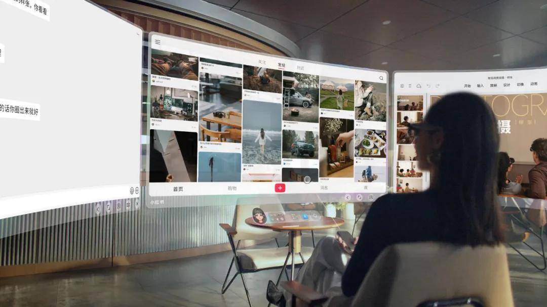 相比蘋果Vision Pro,這款產品的呈現和使用顯然更符合當下C端消費者的需求。具體體現在重量、場景之中:AR眼鏡僅僅75克,相當於一副無線藍牙耳機的重量;空間主機Station可以單手握持和操作、隨揣隨走;聚焦居家、户外、出行三大場景,能夠實現遊戲、娛樂、大屏觀影、瀏覽網頁、寫代碼、編輯文檔、做PPT等多個功能。