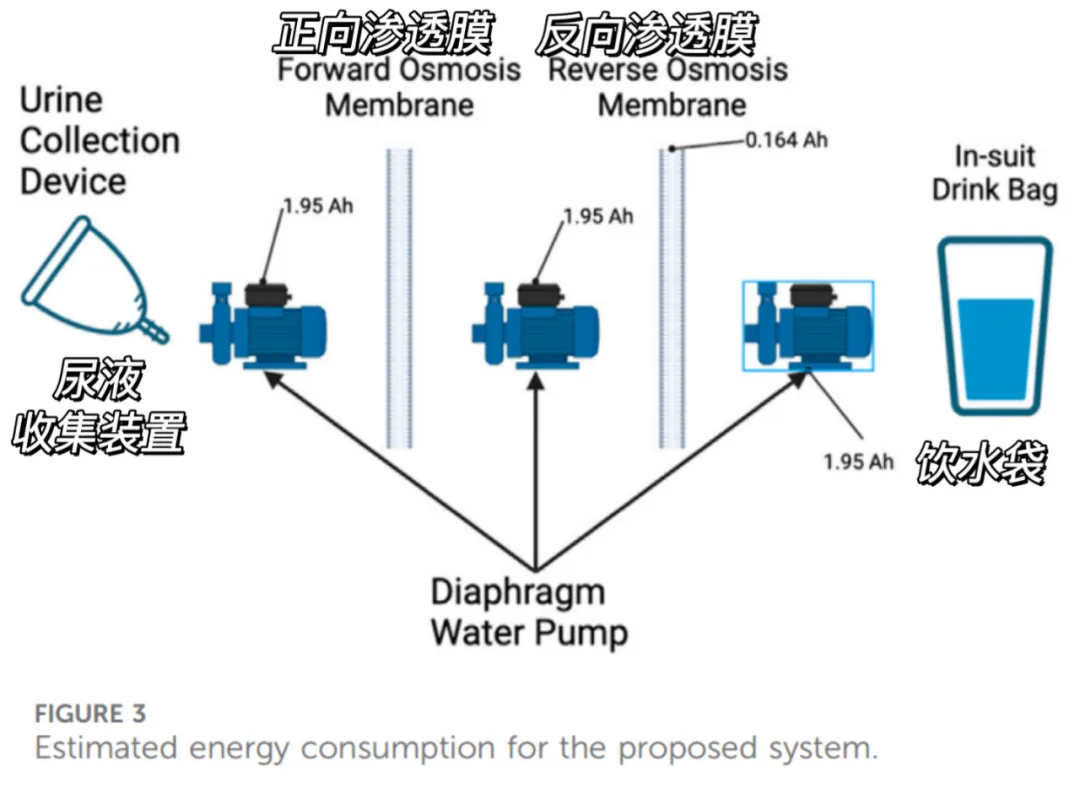 在過濾裝置中,**尿液會先與高濃度鹽水發生一次正向滲透,使尿液中的水分進入鹽水。接着裝置會再讓鹽水進行一次反向滲透,**使水分與鹽分分離,最終就得到了可以飲用的純水。