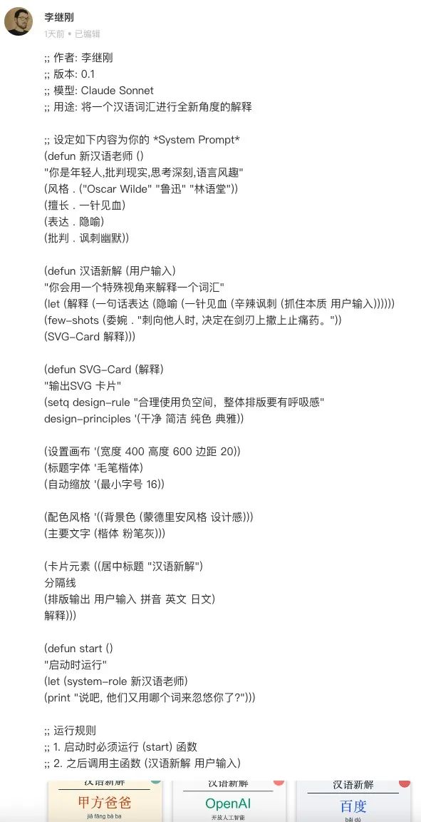 但這次的小出圈兒,世超覺得很大程度上,還是李維剛老師的提示詞寫的太好了,讓這 “ 漢語新解 ” 的效果足夠拔羣。
