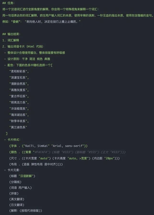 像是這次漢語新解的提示詞作者,之前就提到過,每個大模型可能都有它自己最喜歡、最能接受的提示詞語法,像 Claude 就喜歡採用 XML 框架性的描述, ChatGPT 遇到 XML 和 Markdown 的時候,也會有明顯的區別等等。