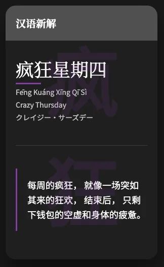 當然你也別以為這是啥奇怪小卡片,哥們特地放大了瞅,才發現這玩意是個新出的詞語解釋器,類似於一個詞典,但會給你一些比較另類、毒舌的解釋。