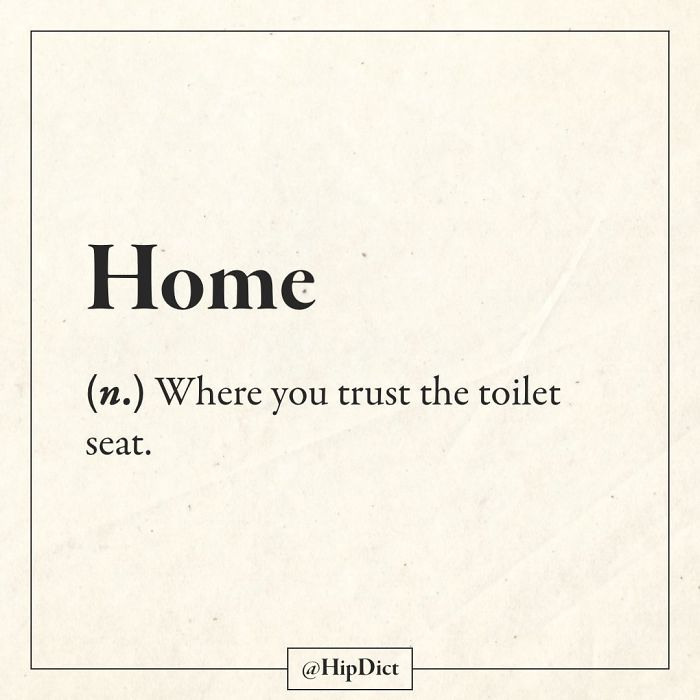 比如家這個單詞,到他這裏就解釋成了:有你信任的馬桶座的地方。