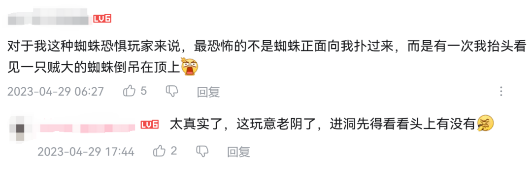 8月遊戲送測後,兩邊人都挺急的:普通玩家想知道“遊戲好不好玩”,蜘蛛恐懼症患者打聽“這遊戲能不能玩”。大大小小的爆料過後,蜘蛛的事很快有了結論:要暴死了,但死的是玩家。