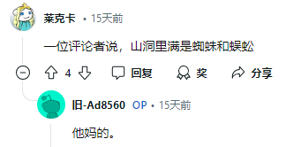 “你以為我想啊,它也沒告我裏面有蜘蛛啊!”