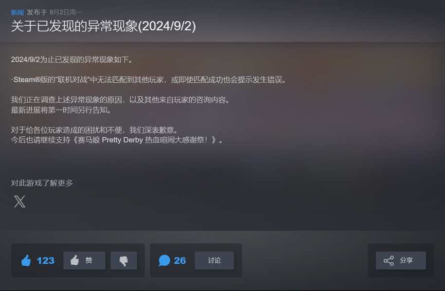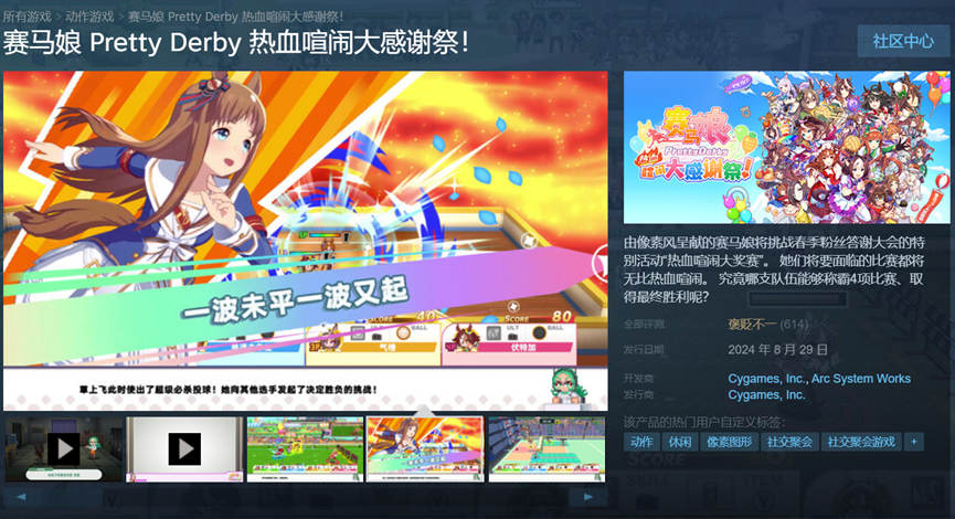 兩週過去,《賽馬娘》IP的最新衍生作《賽馬娘 Pretty Derby 熱血喧鬧大感謝祭!》(以下簡稱《大感謝祭》)在Steam上的評價是64%,“褒貶不一”。