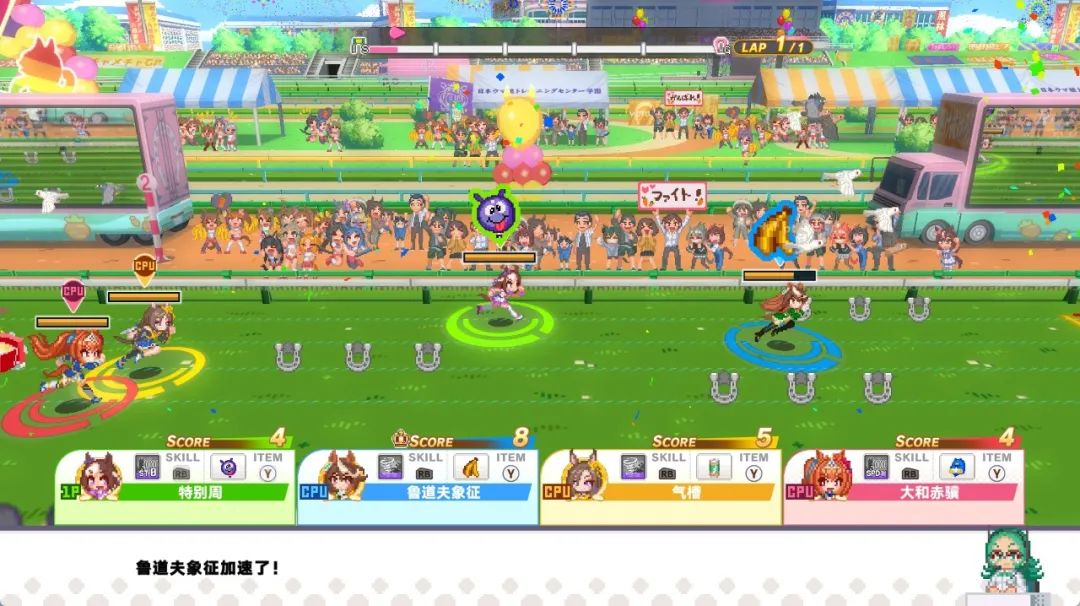 從實際內容來看,這次的聯動也很成功。一是“熱血運動會”的無厘頭設定可以無縫接入賽馬孃的世界觀和玩法。玩家們在遊戲中可以“不擇手段”地爭奪躲避球、籃球和大胃王比賽的名次;