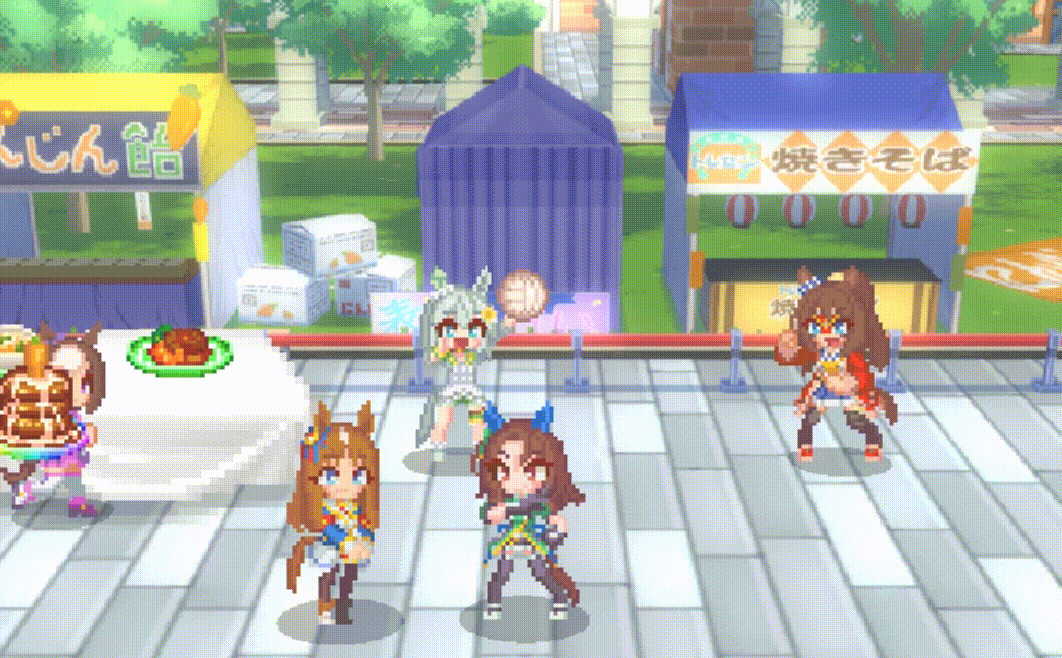 此外遊戲裏也包含了由不同賽馬娘們組成小隊的劇情路線,埋了不少細緻的互動和彩蛋,馬賽克小人的動作表現也相當豐富,足以讓衝着這些而來的原作粉絲感到滿意。
