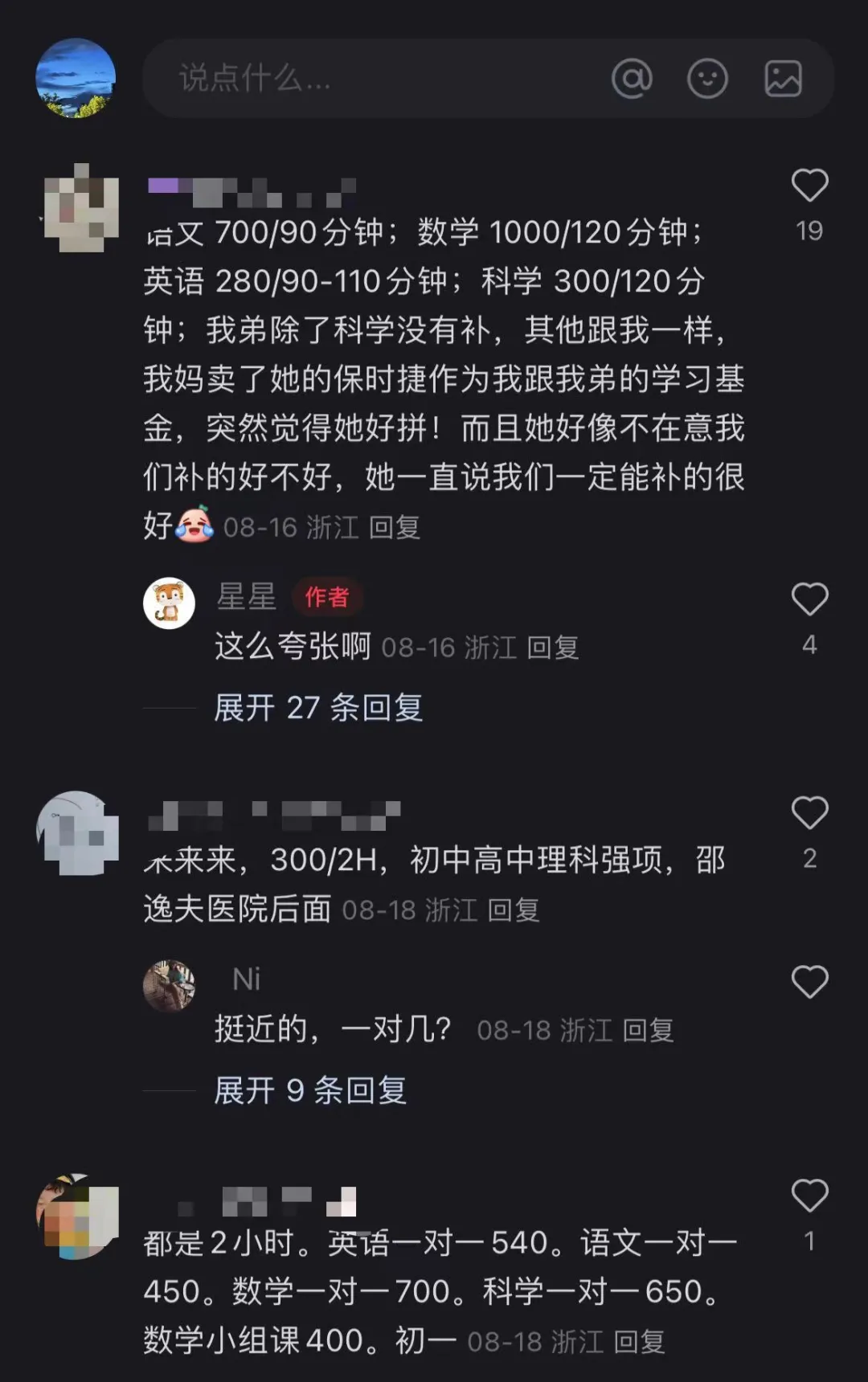 就此,一位杭州拱墅區的家長向鯨商表示,“現在學習卷得很,班上有條件的都補,自己不補,還是會擔心孩子的學習被落下。”之前,她為剛上五年級的兒子退掉了數學輔導課,但當他發覺周邊家長仍在堅持補課,且兒子學習成績下降時,他不得不選擇“隨大流”,重新報了數學輔導班。