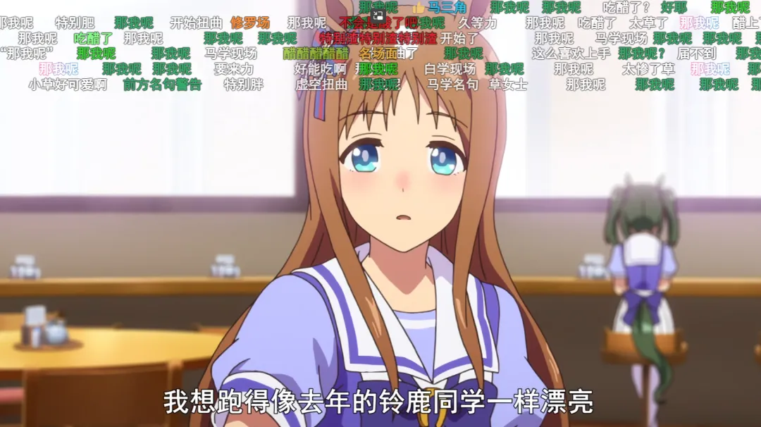 眯眯眼寶貝草上飛就更慘了,她在後面與特別周比賽時,無聲鈴鹿正遭遇骨折打擊,特別周滿心滿眼都是鈴鹿,完全沒顧對手想要一決勝負的心思,嘴裏喊的全是鈴鹿,草上飛遂出經典名言:“那我呢”,彈幕一片綠色相護。
