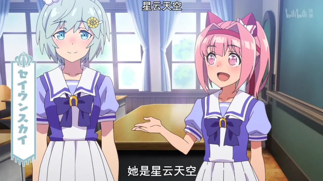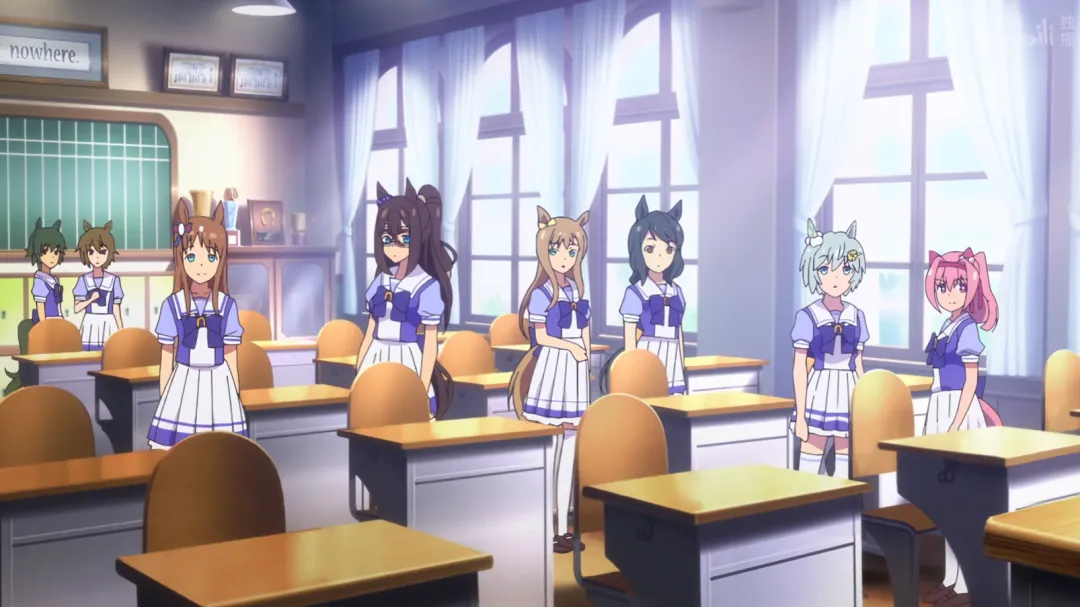 而當特別周進入了學校,遊戲味兒也確實出來了,老師也好,同學也好,出場方式都帶着點遊戲感。