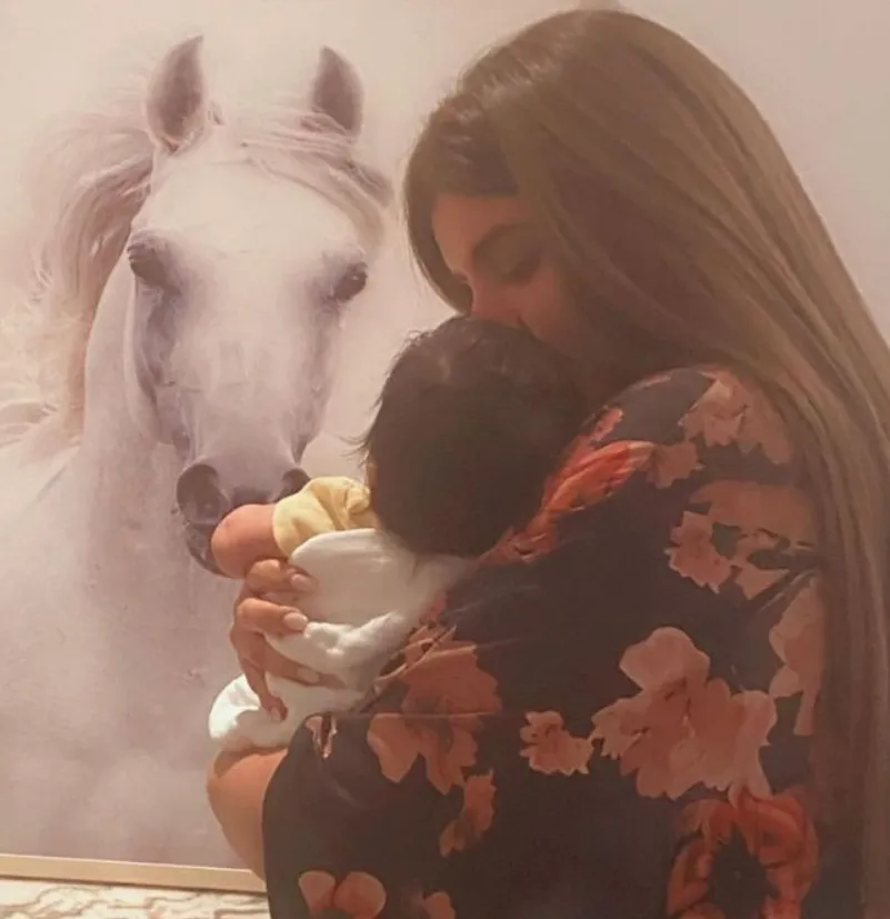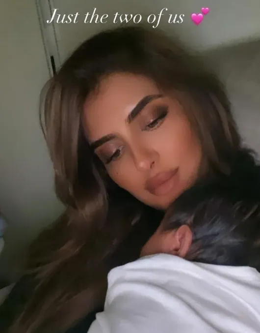 眼尖的網友發現,女兒出生後不久,瑪哈拉便分享過一張自己獨自抱娃的照片,配文“只有我們兩個”。