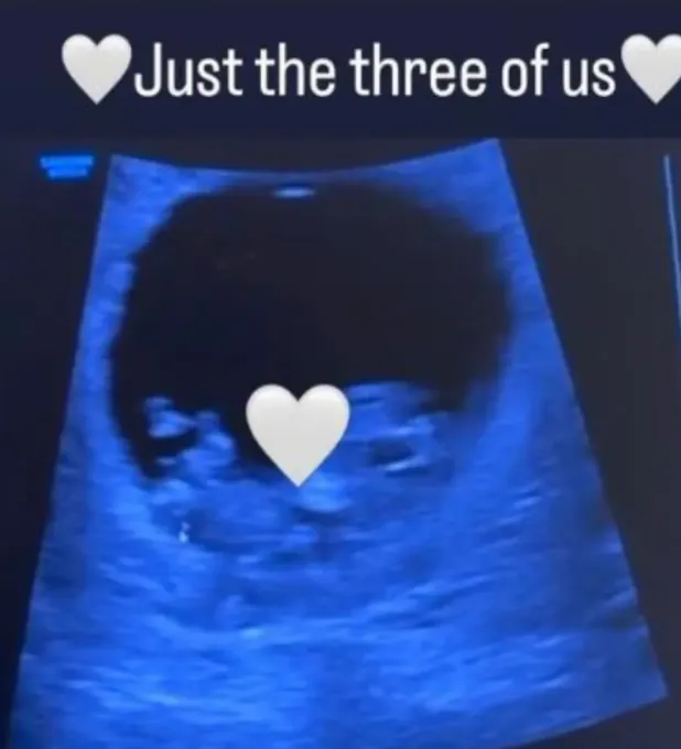 這次是一張B超照片,瑪哈拉配文“我們三個哦”,官宣懷孕。
