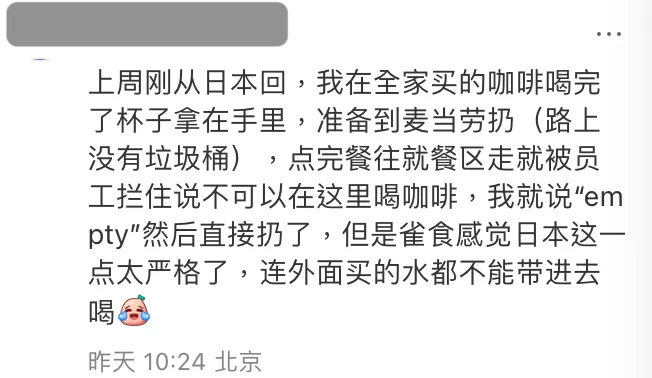 有小夥伴坦言,部分日本店員甚至嚴格到,就算顧客只是來扔空杯子都要刨根問底。