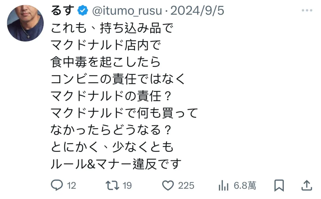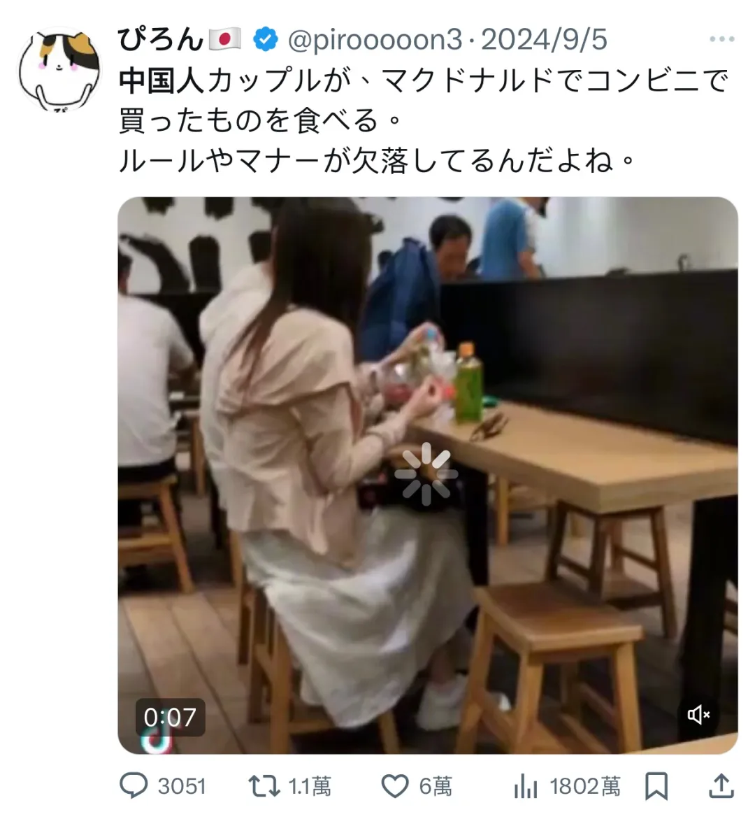 最近,一對疑似為中國籍的年輕情侶因在日本麥當勞吃從便利店買來的食物,而遭受大規模網暴。