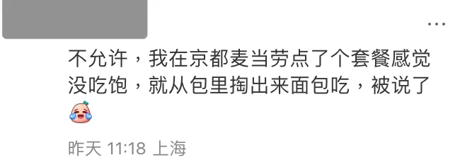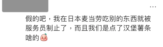 部分網友表示自己曾在日本麥當勞因吃自帶食物而被店員制止。