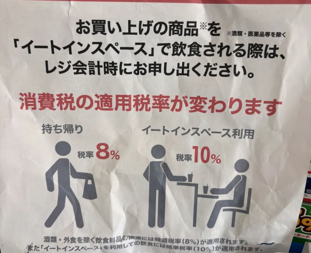 因此,在便利店購買食物,外帶税率為8%,堂食税率為10%。