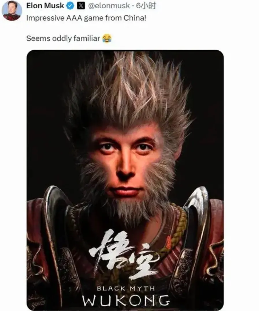 比如9月7日馬斯克在社交平台上發文稱讚《黑神話:悟空》。