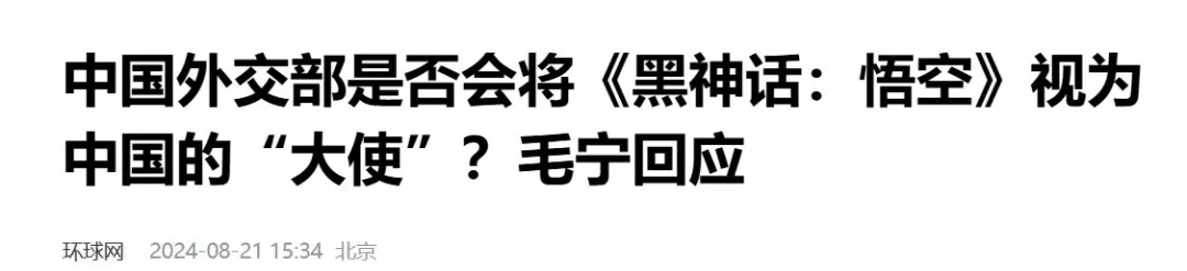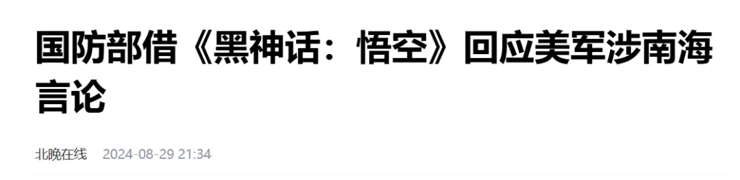 8月29日,國防部發言人就南海局勢借《黑神話:悟空》的熱度回應稱: