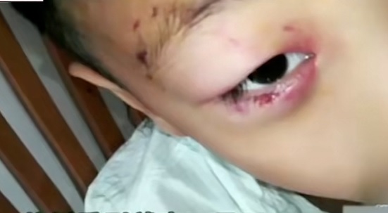 孩子傷勢很嚴重,小腿、眼睛四周也被抓出了血。