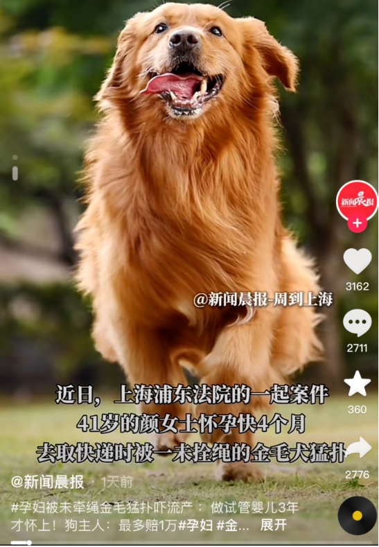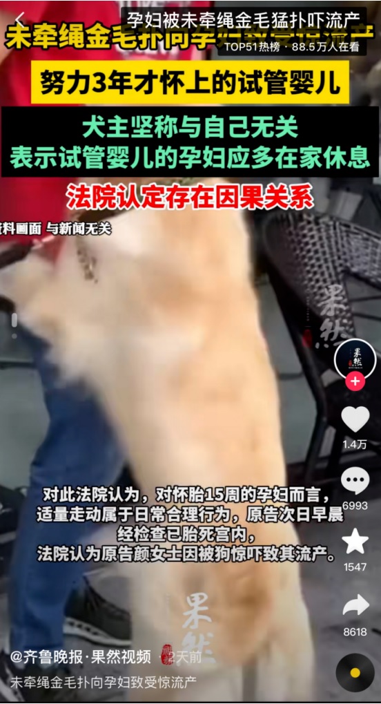 三年備孕,一朝流產,而始作俑者就是那條沒有牽繩的金毛狗。