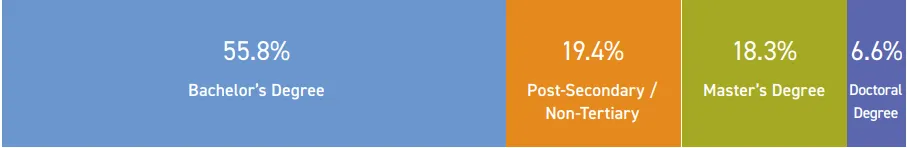 ▲ 從左至右:學士學位、大專/非高等教育資格、碩士學位、博士學位。