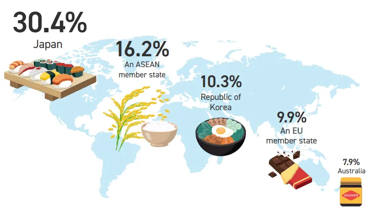 日本(30.4%)仍然是東南亞人最喜歡的旅遊目的地,其次是東盟成員國(16.2%)和韓國(10.3%)。