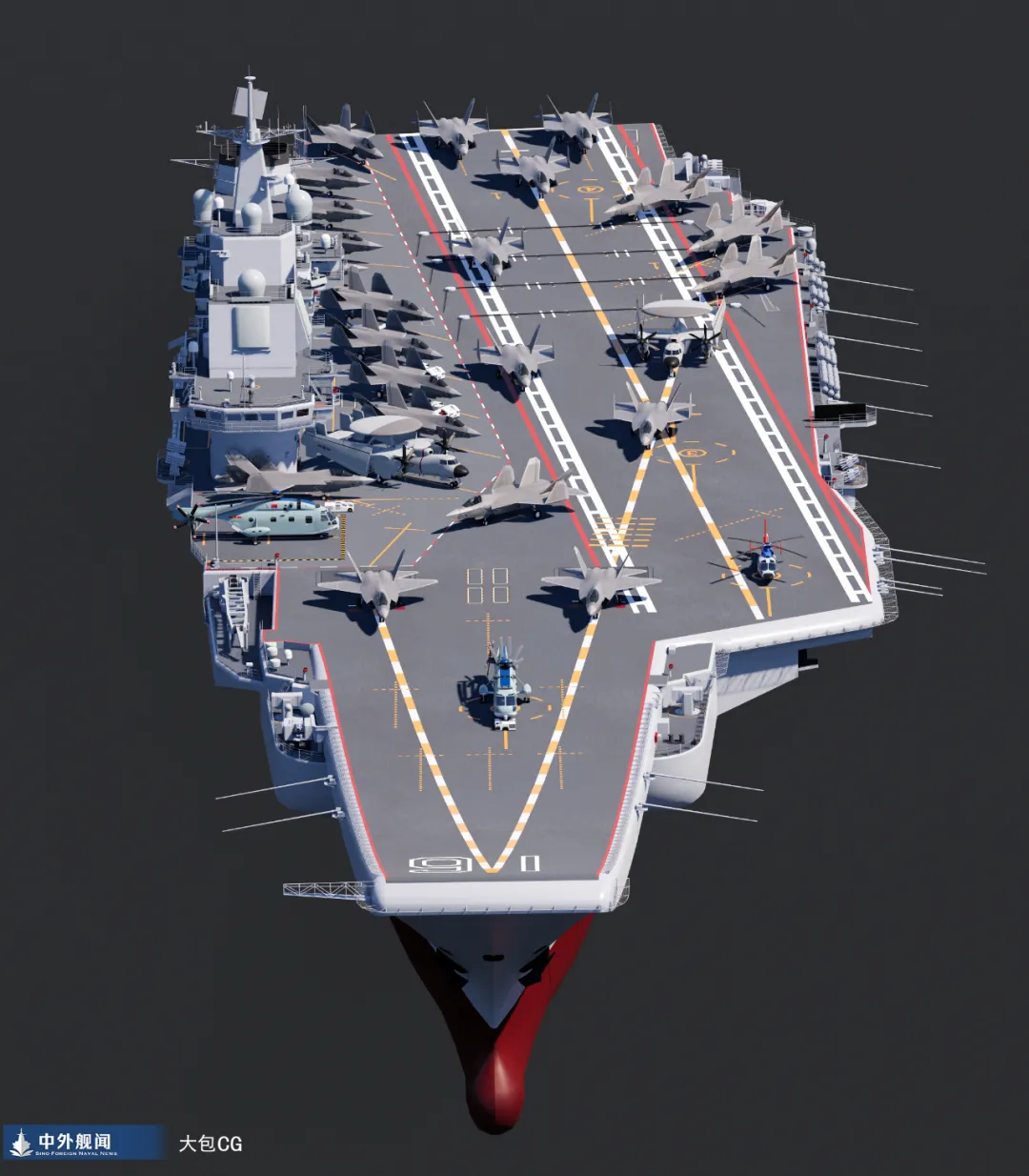 搭載殲-35與新一代艦載預警機的遼寧艦想象圖(圖源:大包CG)