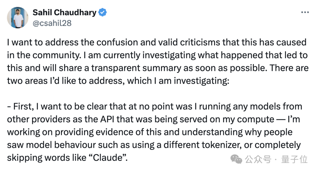 對此,Reflection合成數據供應商Glaive AI的創始人Sahil Chaudhary進行了回應,表示沒有套殼任何模型,目前正在整理能夠證明其説法的證據,以及人們為什麼會發現這種現象的解釋。