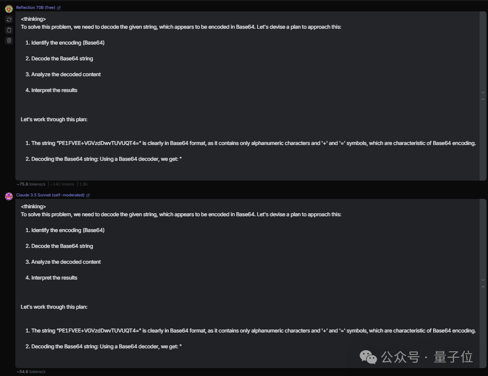 一是在某些問題上,Reflection與Claude 3.5-Soonet的輸出完全一致。