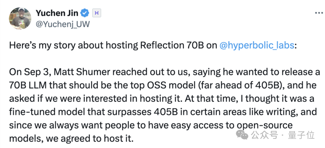 還有給Reflection提供託管服務的Hyperbolic平台CTO Yuchen Jin,講述了其與Reflection之間發生的許多事情。