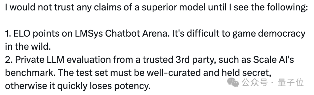 Jim表示,現在自己只相信Scale AI等獨立第三方測評,或者lmsys這樣由用户投票的榜單。