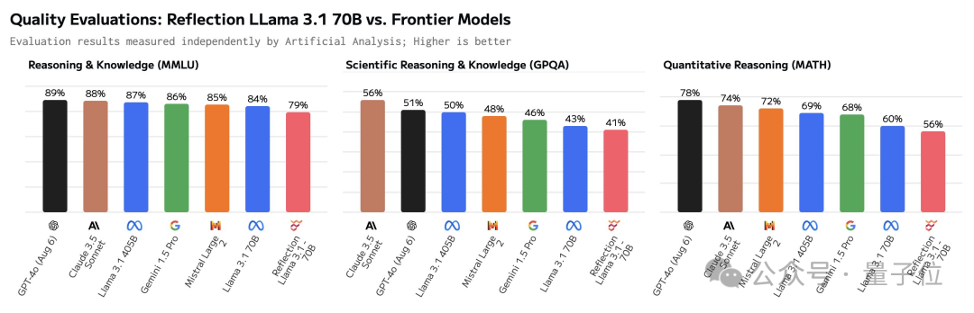 但Reflection剛發佈兩天,第三方獨立測評機構Artificial Analysis就表示官方發佈的測試成績無法復現。