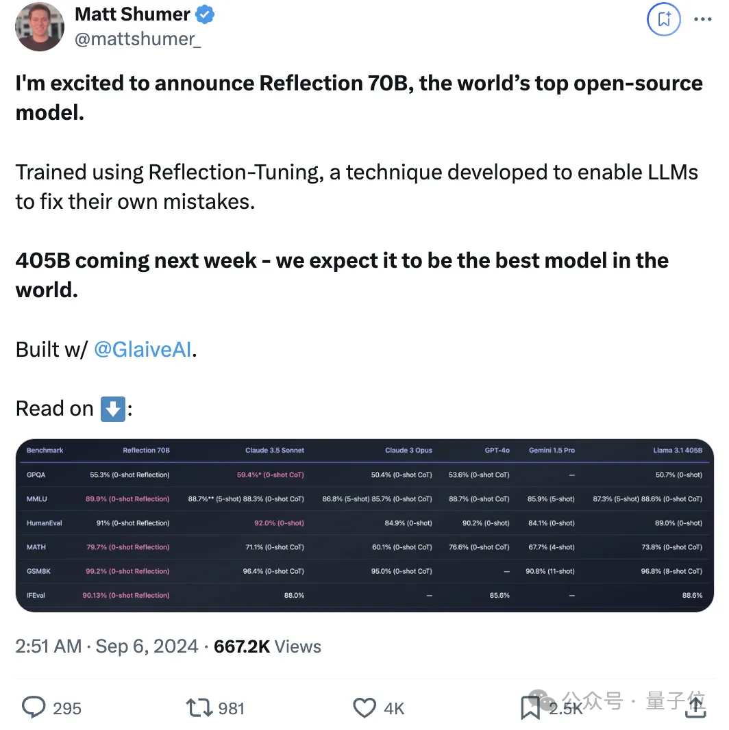 被指控造假的,就是宣稱“幹翻GPT-4o”的70B開源大模型Reflection。
