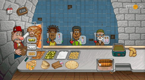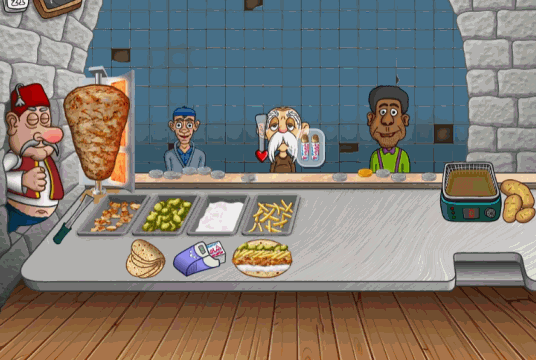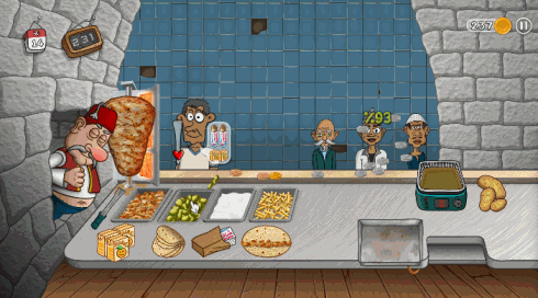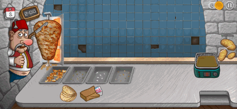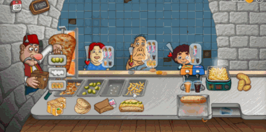 由於姬對這類遊戲身經百戰,因此上手很快,前期就開始發展了許多的業務,姬本來尋思可以靠此來賺大把大把鈔票,然後再升級一些自動化設備之類的,但是姬想錯了,後來的客人要求那是越來越多,姬也是越來越忙。比如將沙威瑪烤一烤,在烤的同時去做別的,照顧別的客人,回過頭來發現,沙威瑪已經烤過火了,只能扔掉重新做。