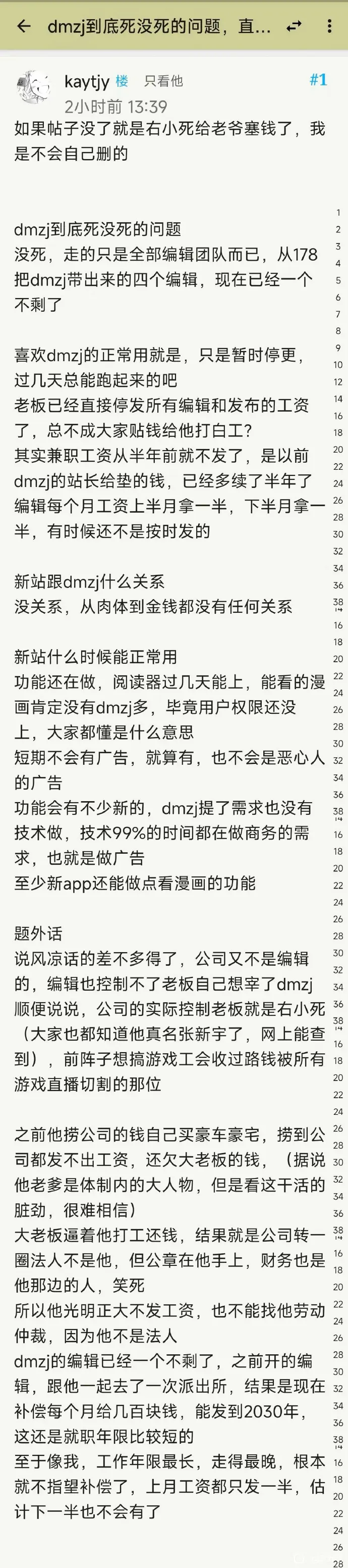 接着在昨天中午,網友kaytjy在國內s1論壇透露了一些內部信息,對“動漫之家死沒死”一事進行了解釋。kaytjy是動漫之家的老編輯了,名字比較熟悉,經常看到其留言出現在動漫之家的置頂評論區。