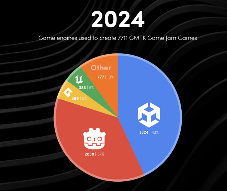但到今年參賽的七千多款作品中,用Unity的人數明顯下降,過去像Godot等相對小眾的引擎,使用的佔比大幅上漲。