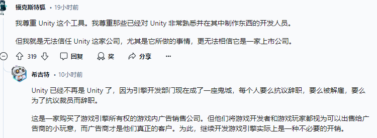 而在一些用户心裏,Unity的這場鬧劇並不算完。官方恢復原本的付費模式雖然是好事,但人們對Unity的信任一時半會兒很難重建。