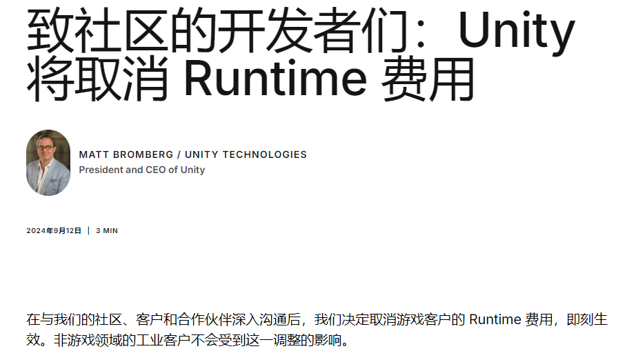 去年9月12日,Unity引擎宣佈增加一項名為“Unity Runtime Fee”的收費項目。