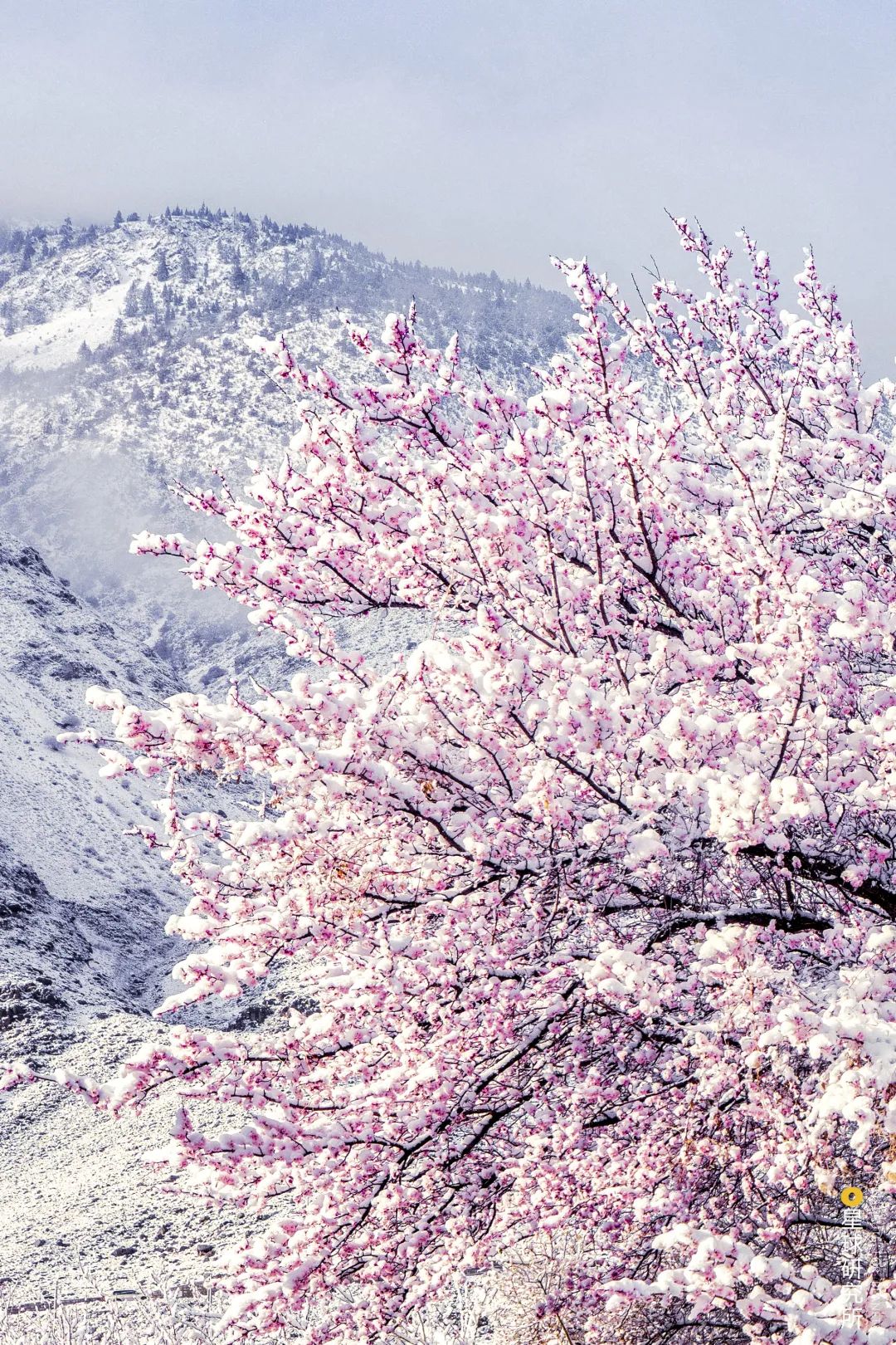 (八宿春日桃花傲雪開,桃花雪指春季桃花盛開之時,因冷空氣影響而出現的降雪現象。攝影師@温佐沛)