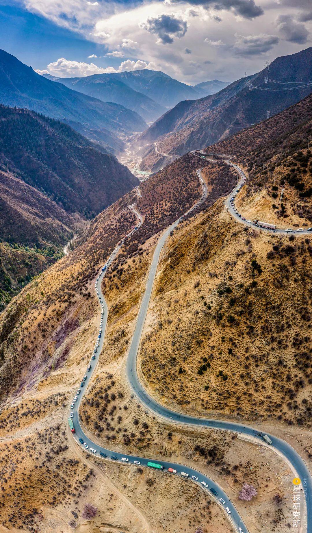 (汽車排隊駛過G318國道怒江72拐段,攝影師@李文博 )