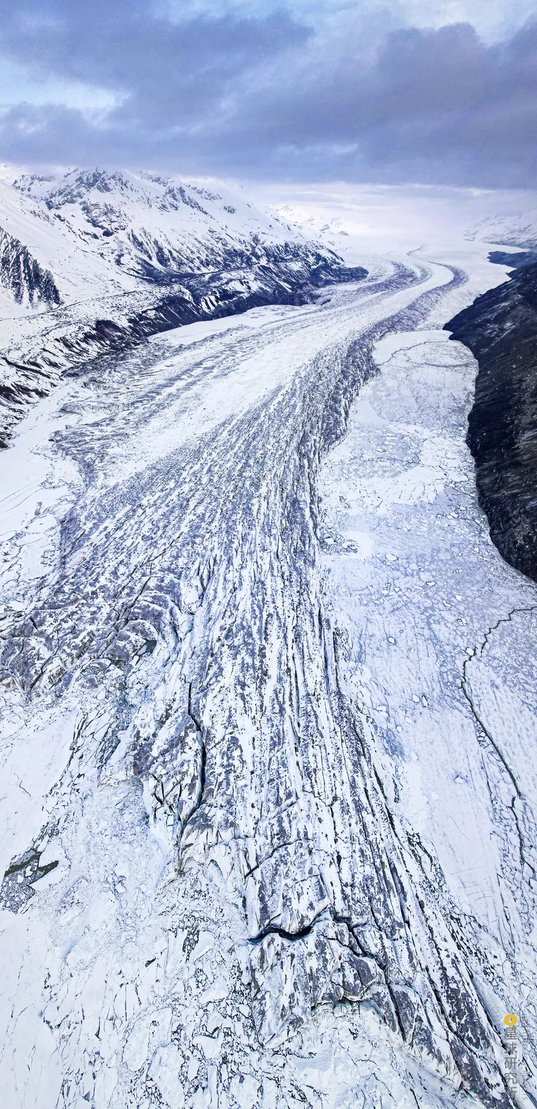 (請橫屏觀看,雅隆冰川表面有多條S形的中磧,攝影師@冒國春)